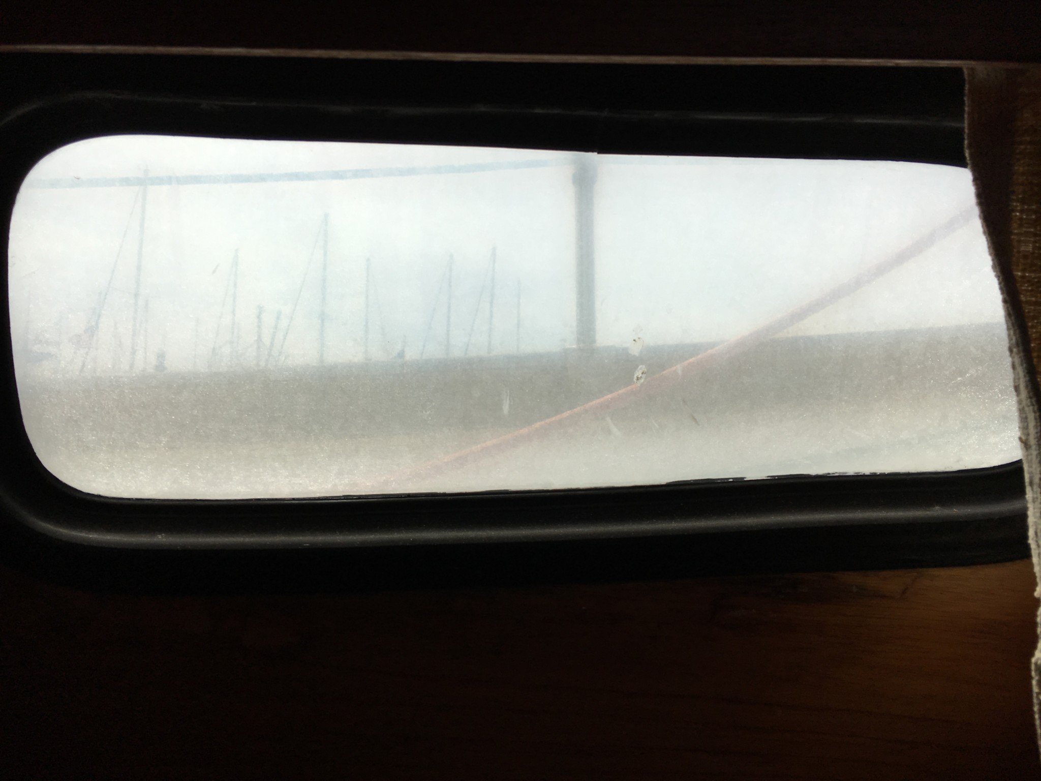 I have started to see some crazing on my ports both on the aft cabin and the fore cabin. Some research revealed that the port material is an acrylic or poly-carbonate material and should not be cleaned with any ammonia or vinegar based window cleaning solution (like windex here in the USA). The mild acid in these cleaners will react with the acrylic and induce crazing & cloudiness.