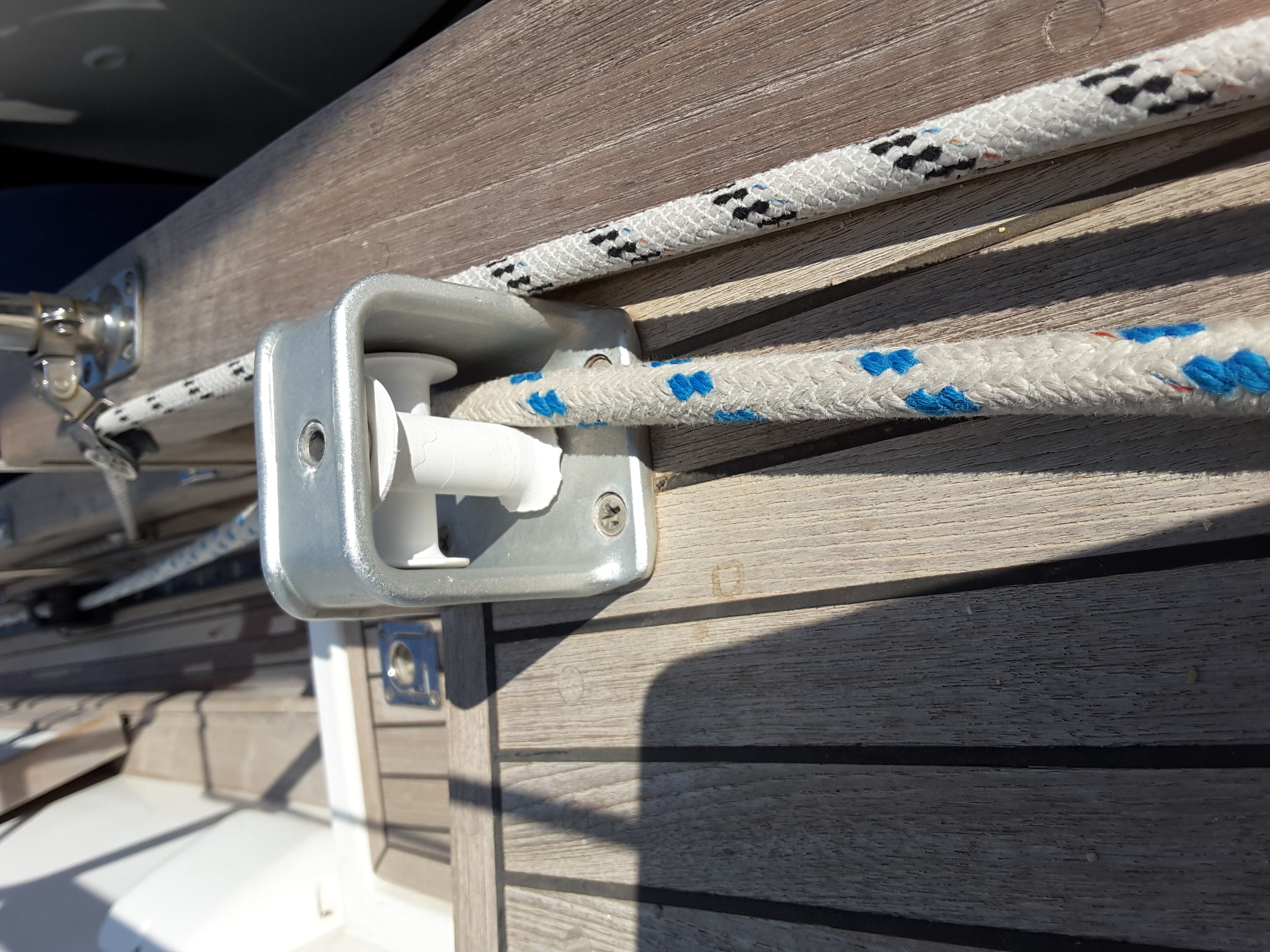 I also have a fairlead partially damaged on my 38 and was hoping to replace it, but don’t know where to buy it from (the Yard?)…as you can see the inner plastic part is broken.